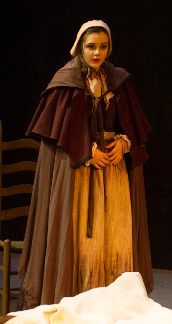 We used thin white veils to represent witchcraft or the suppression of inner passions. Through rehearsal and discovery the veils became a major element of the choreography and directorial vision.